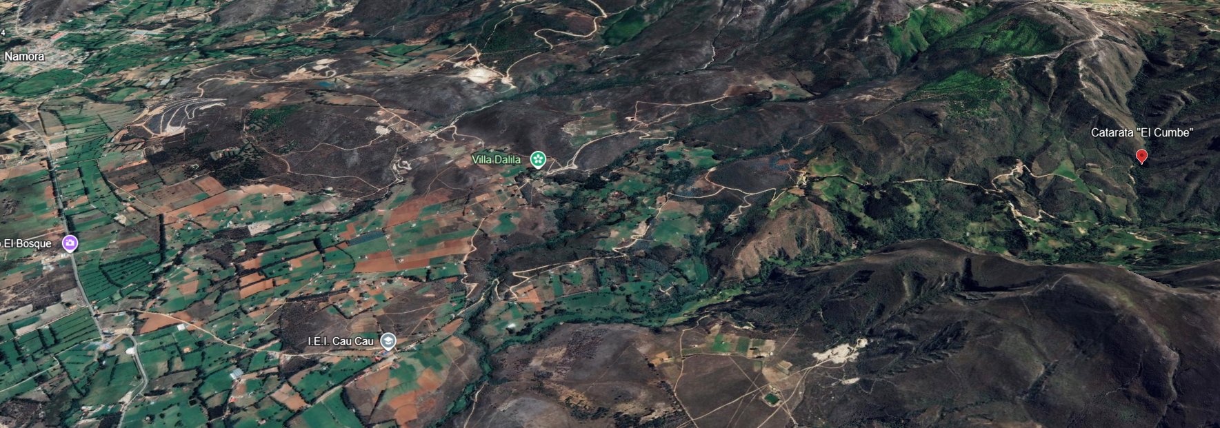 Esta catarata se ubica en el caserío Cau Cau, ubicada a 8 km al este de Namora, con una altitud de 2 826 m.s.n.m. Con hermosa caída de agua cristalinas rodeadas de exuberante vegetación, cuyas chorreras provienen del río la Quinua, con una caída de aproximadamente 23 m.